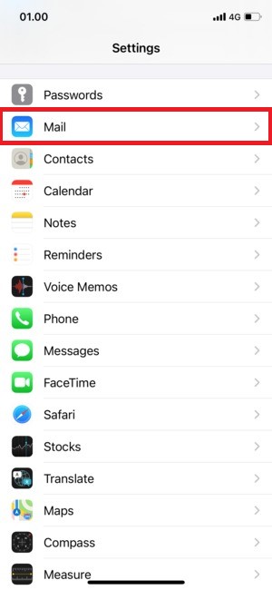 2)Tap Mail. |