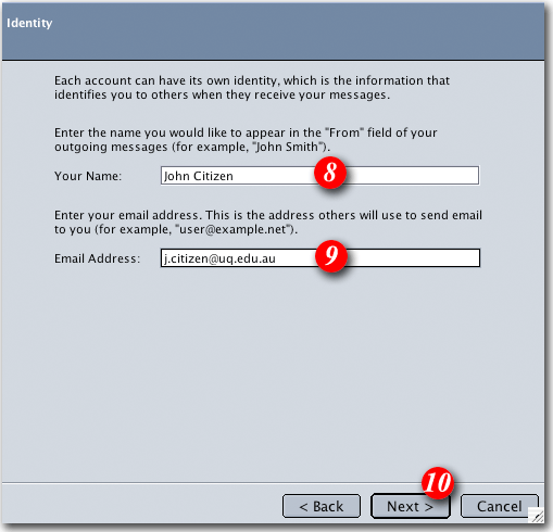 | 8)Type in your name as you would like it to appear on outgoing email messages |